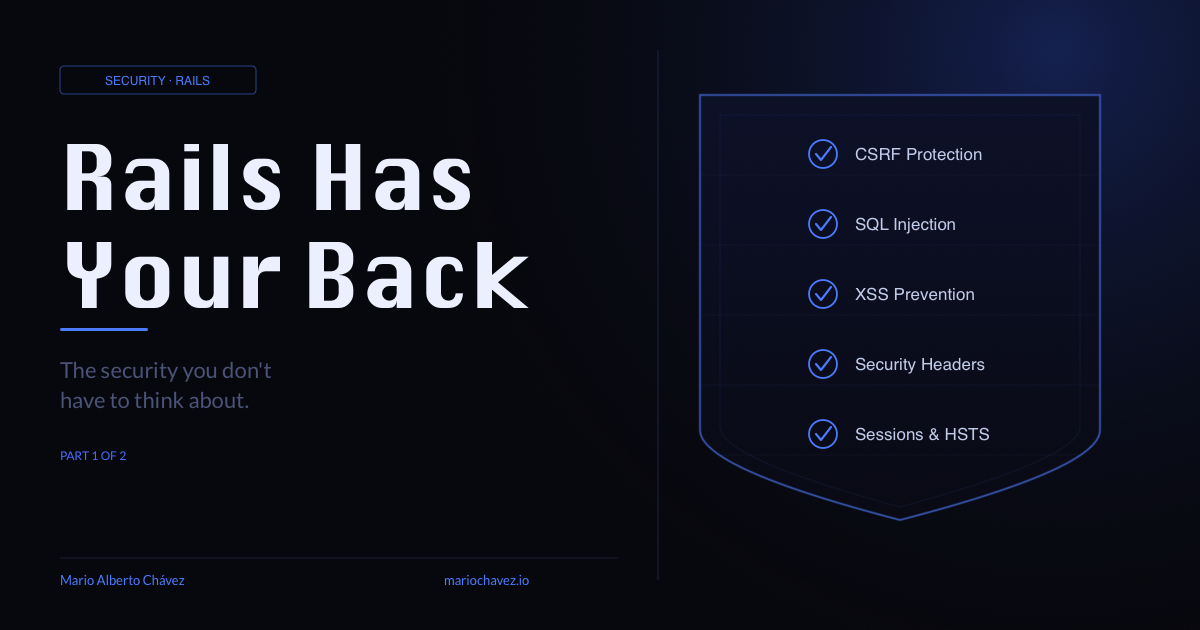 Rails security defaults cover CSRF, SQL injection, XSS, encrypted sessions, and more — here's what the framework handles before you write business logic.